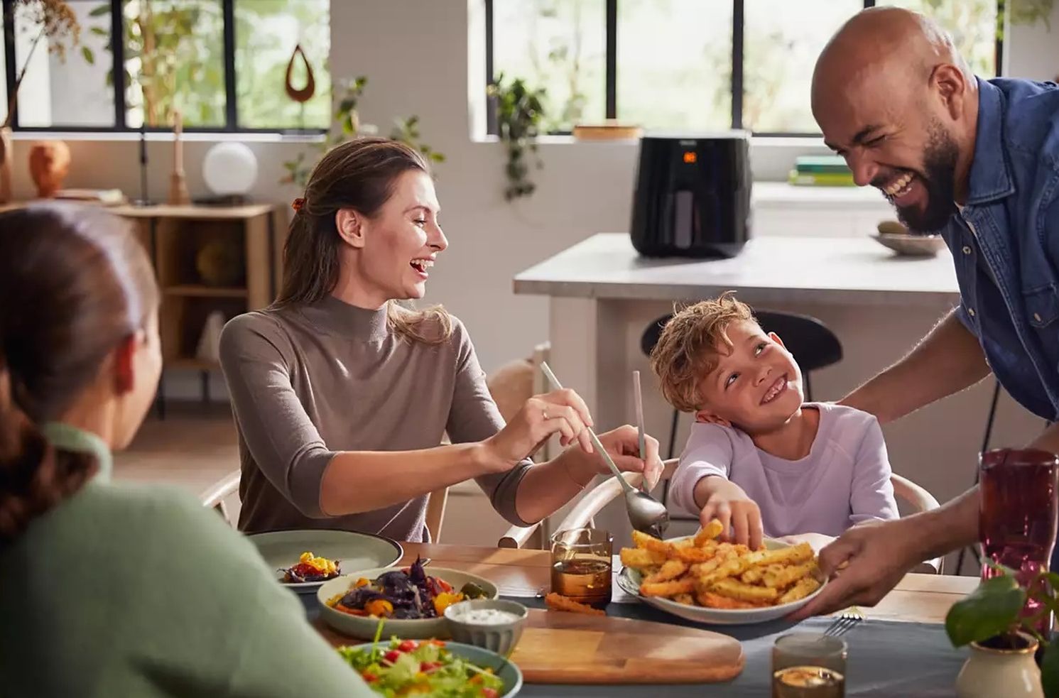 Urządzenia Airfryer firmy Philips są wydajniejsze niż tradycyjne piekarniki — przygotowywanie pysznych posiłków zużywa nawet o 70% mniej energii i zajmuje o 50% mniej czasu****.