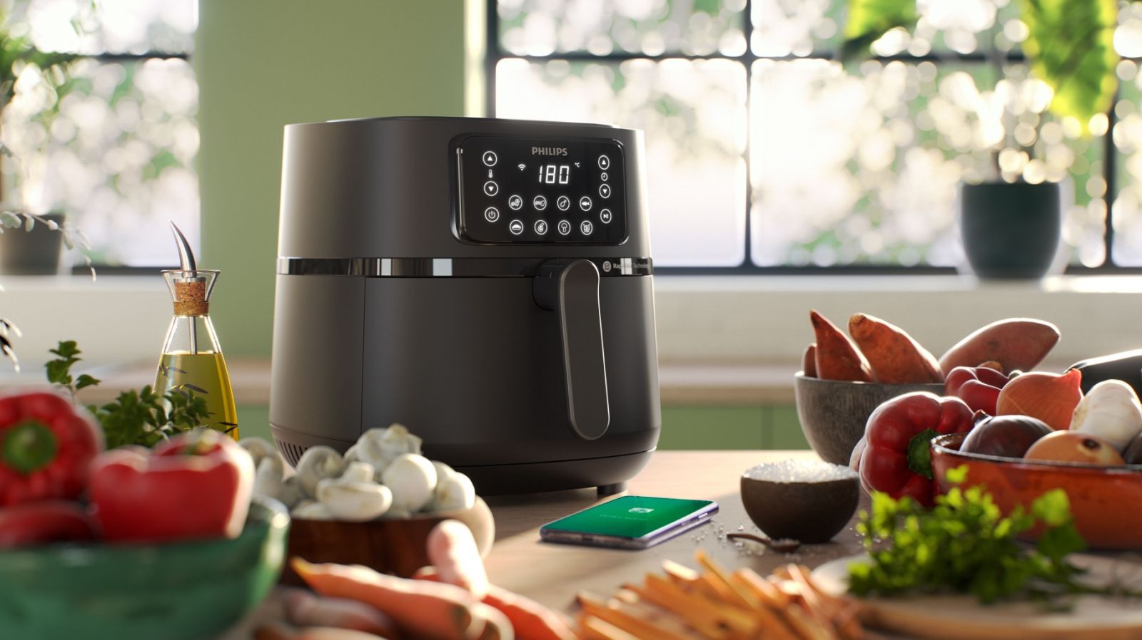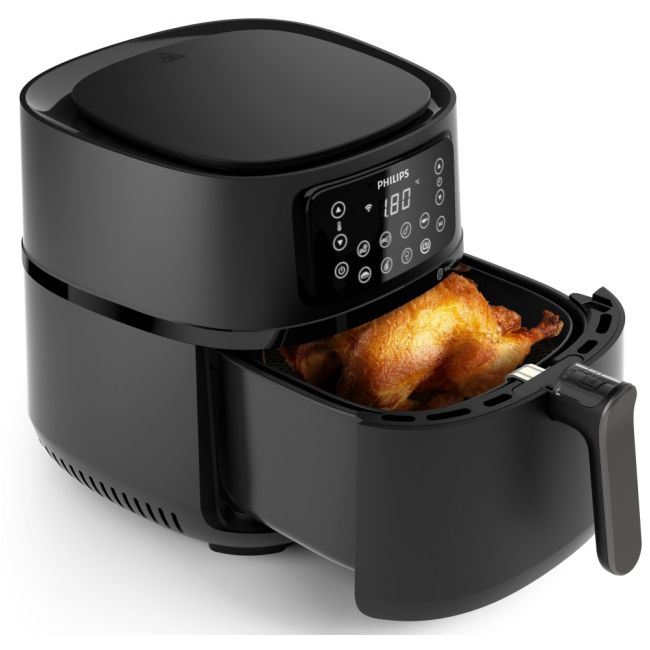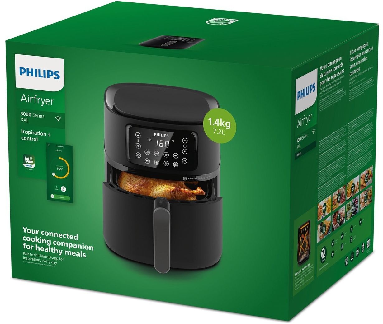Urządzenie Philips Airfryer serii 5000 XXL Connected to Twój towarzysz w codziennym gotowaniu, umożliwiający przygotowywanie bezproblemowych, zbilansowanych pod względem odżywczym i wyśmienitych posiłków dla całej rodziny o każdym dniu tygodnia.