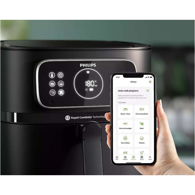 Gotowanie z przewodnikiem: podłącz urządzenie Airfryer Combi do aplikacji HomeID, aby łatwo tworzyć pyszne posiłki. HomeID zapewnia wybór szerokiej gamy dań z całego świata i prowadzi użytkownika na każdym kroku. Ty również możesz przesyłać swoje ulubione przepisy!
