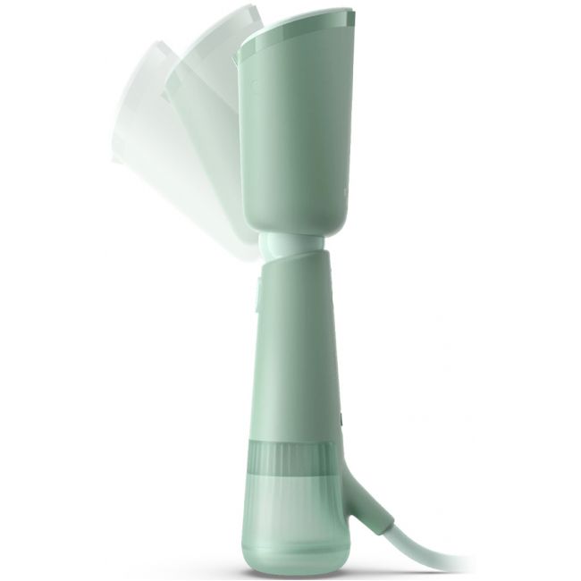 Parownica ręczna Philips z serii 5000 jest gotowa do wytwarzania pary w każdej chwili. Wystarczy ustawić głowicę na parowanie ubrań na wieszaku lub płaskiej powierzchni i rozpocząć prasowanie za pomocą pary. Regulowana, odchylana głowica oznacza, że urządzenie można łatwo spakować w podróż oraz szybko i łatwo schować w domu.