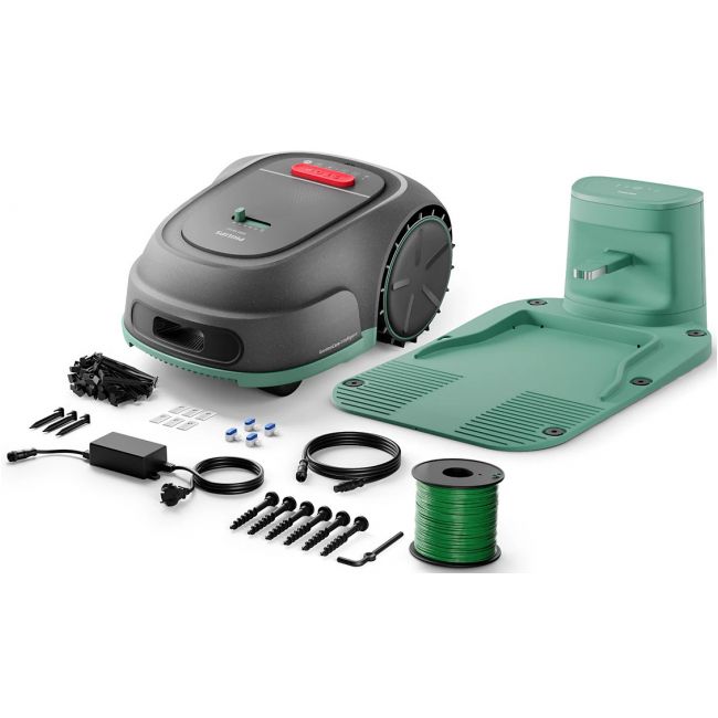 - 1 szt. Akumulator - 1 szt. Stacja ładująca - 200 szt. Hak ograniczający - 1 szt. Kabel ograniczający 150 m