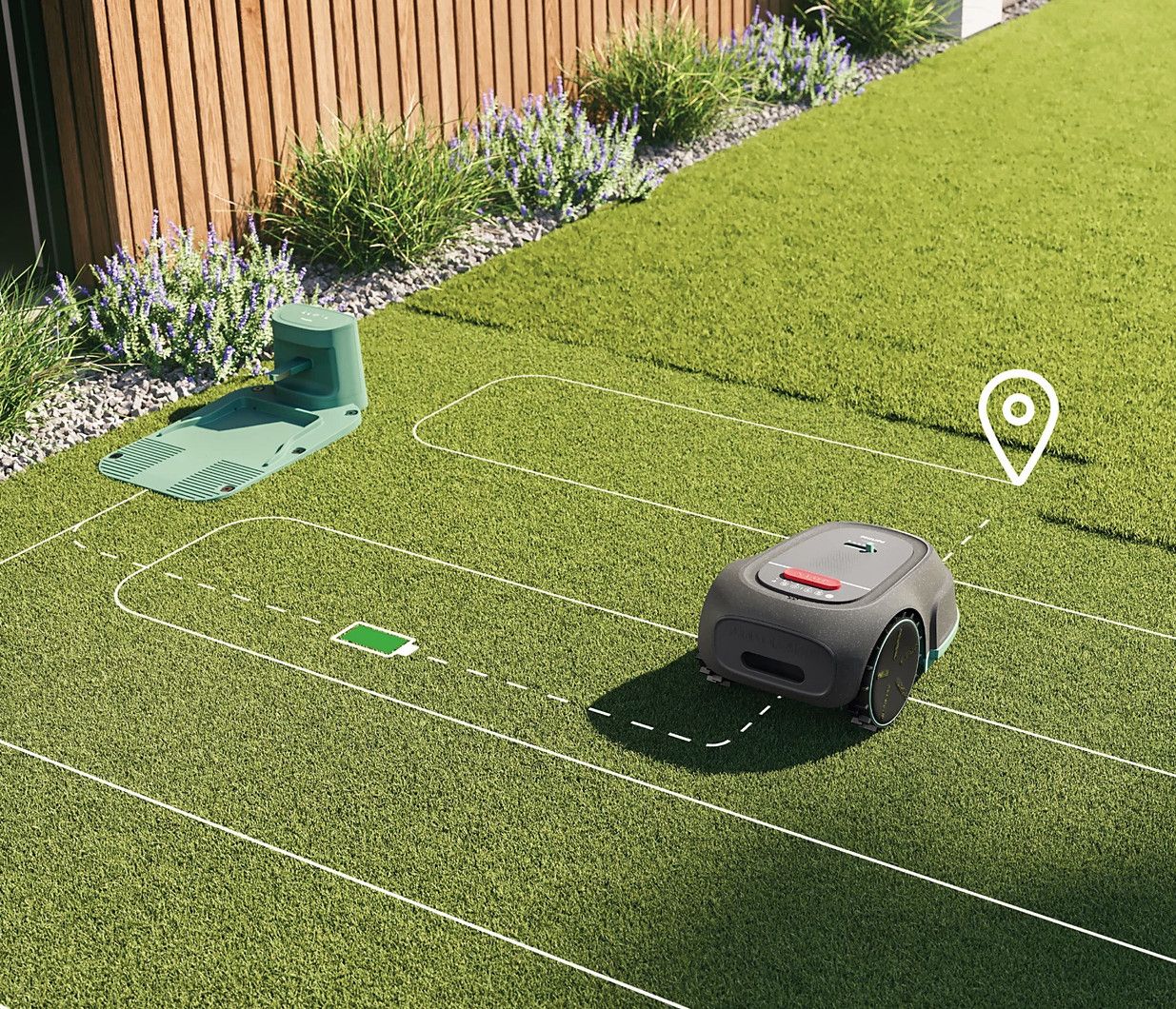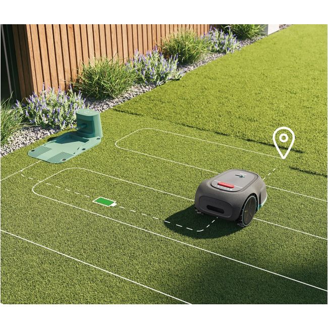 Twój ogród jest mapowany za pomocą systemu GPS, więc kosiarka zautomatyzowana automatycznie powraca do bazy w celu naładowania, a następnie wraca do ostatniego miejsca, w którym zatrzymała się po ładowaniu, aby rozpocząć koszenie.
