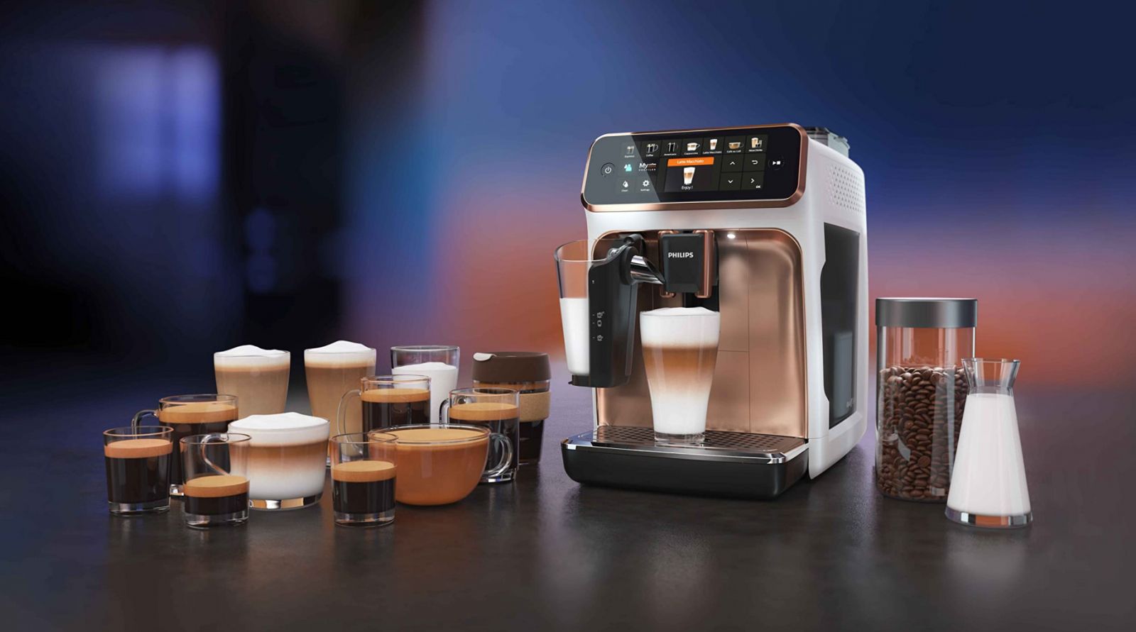 - System spieniania mleka LatteGo - Funkcja Extra Shot - Ceramiczne młynki - Wyjmowany blok zaparzający