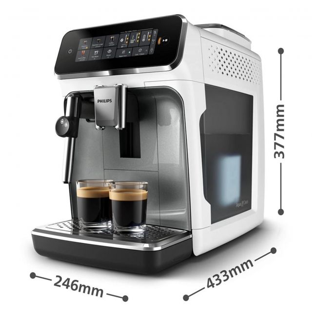 Ciesz się 5 rodzajami ciepłych i orzeźwiających napojów o idealnej piance, aromacie i temperaturze za naciśnięciem jednego przycisku. Dzięki klasycznemu spieniaczowi do mleka z łatwością przygotujesz gęstą piankę do cappuccino lub gorące mleko do gorącej czekolady.